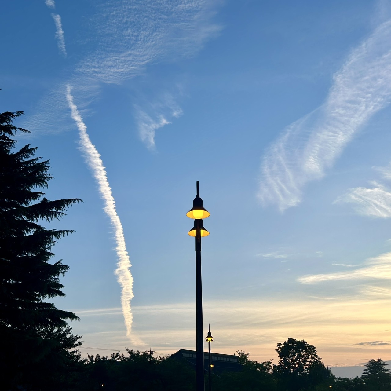 雲と夕焼けとレトロな電灯。