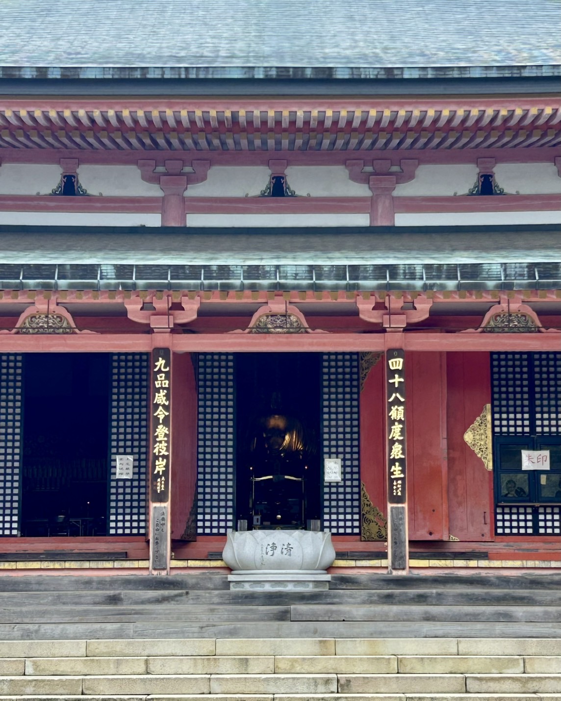 根本中堂では、10年間の大改修のため通常は回廊からの通路が、現在は皇族の方が使う正面通路を使用できるなど