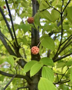 春にはお花で目を楽しませてくれた、ハナミズキやヤマボウシやコブシが実をつけています。