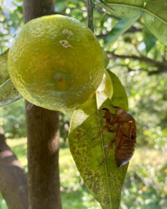 2022年の画像ですが、柚子の木にセミの抜け殻がありました。