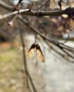 紅葉シーズンのまさに今、モミジやカエデでこのようなプロペラのような種子が見れます。