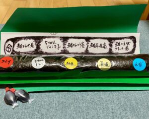 恵方巻は「恵」、海鮮恵方巻は「海鮮」とわかりやすく包んであります。
