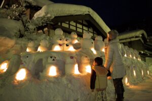 雪をテーマにした冬の恒例イベントで、石川県白山ろく桑島地区・白峰地区の住民が大小さまざまな雪だるまを作り、地区内が雪だるまでいっぱいになるそうです。